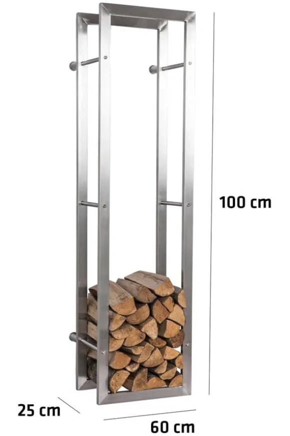 Vedställ Keri Wall ~ Rostfritt stål Med detta exklusiva vedställ tar du in en riktig pärla i ditt hem. Det är en praktisk och ren lösning för att på ett säkert sätt förvara och stapla ved, för att sedan snabbt kunna använda den vid behov. Detta vackert enkla och eleganta vedställ ser bra ut överallt. Denna produkt är handgjord med högkvalitativa material och lovar högsta kvalitet och hållbarhet. Vedstället fästs enkelt på väggen med 4 skruvar; Lämpliga skruvar och pluggar ingår i leveransen. Specialegenskaper: Högkvalitativt rostfritt stål Handgjord kvalitetsprodukt Finns i olika storlekar Robust konstruktion Väggmontering Lämplig endast för inomhusbruk Ca. Mått (bredd x djup x höjd): Totalt: 40 x 25 x 100 cm / förvaring: 32 x 25 x 92 cm Totalt: 40 x 25 x 150 cm / förvaring: 32 x 25 x 142 cm Totalt: 60 x 25 x 100 cm / förvaring: 5 x 60 x 2 cm: 5 x 60 x 2 cm 150 cm / förvaring: 52 x 25 x 142 cm Totalt: 80 x 25 x 100 cm / förvaring: 72 x 25 x 92 cm Totalt: 80 x 25 x 150 cm / förvaring: 72 x 25 x 142 cm Totalt: 100 x 25 x 2 2 x 100 cm 100 x 25 x 150 cm / Förvaringsutrymme: 92 x 25 x 142 cm Lastkapacitet: minimum 60 kg, Vedställ Keri Wall ~ Rostfritt stål