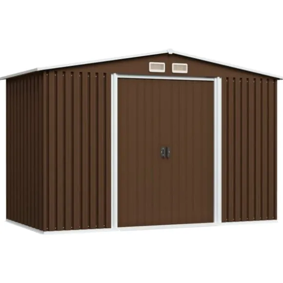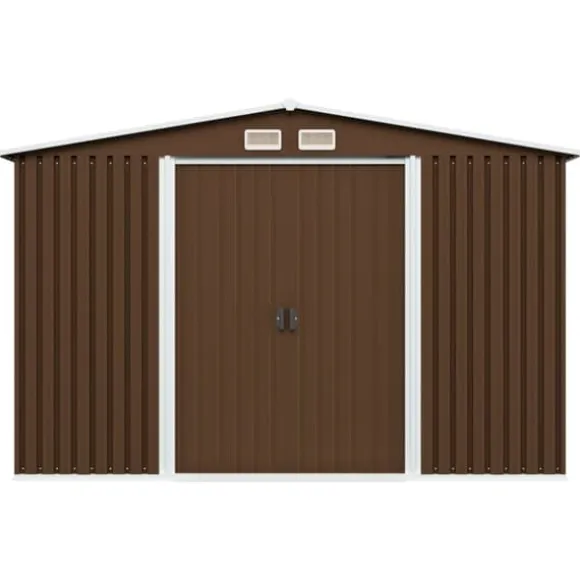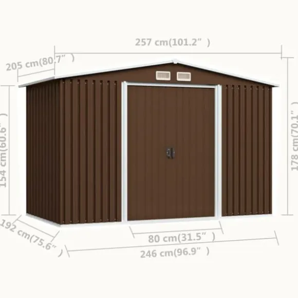 Denna förvaringsbod är utrustad med ventiler, som säkerställer utmärkt ventilation vilket minskar fukt och otrevliga lukter i huset. De dubbla skjutdörrarna framtill möjliggör enkel ingång och utgång. Tack vare det korrosionsbeständiga galvaniserade stålet är redskapsboden robust och hållbar. De har även en stålgrund som skapar extra stabilitet.
