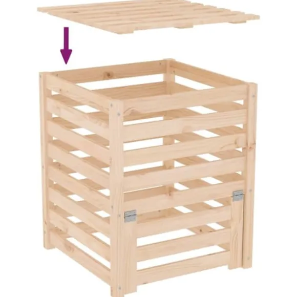 - Massivt furuträ: Massivt furuträ är ett vackert naturmaterial. Furuträ har raka fibrer, och knutarna ger materialet sin rustika utstrålning. Denna kompostbehållare är gjord av massivt furu, vilket gör den robust och stabil.