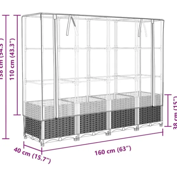 - Praktisk design: Den upphöjda odlingslådan har blixtlås för ventilation, så att du kan justera överdraget efter behov. Dessutom har den snören på toppen, vilket gör det enkelt att fästa nätet i röret.