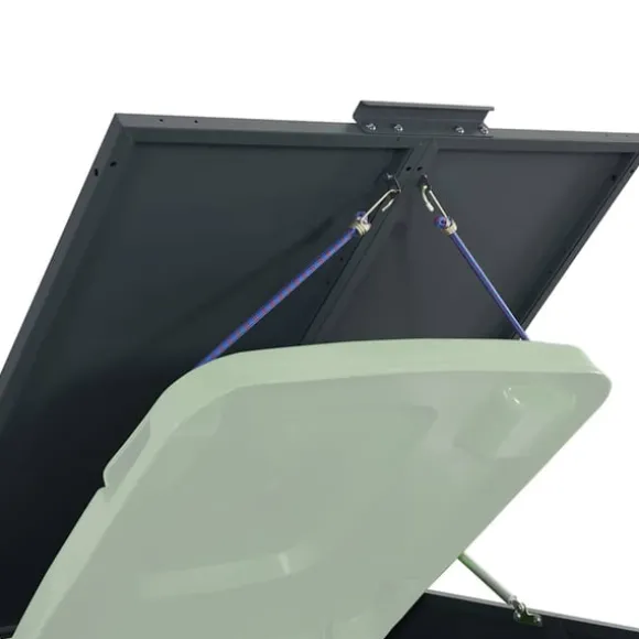 - Praktisk lockmekanism: Gasfjäderlocket har en stropp som ansluter din soptunnas lock till den, så att soplocket öppnas automatiskt när du lyfter på locket till sopförrådet.