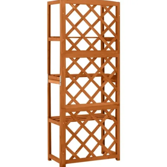 Denna spaljé är tillverkad i massivt granträ, vilket gör den stadig och lämplig för utomhusbruk. Den är ett bra stöd för rosor, murgröna och andra klätterväxter. Växtstödet har 3 hyllor där det kan stå krukväxter och dekorationer.
