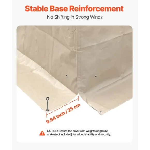 Det vattentäta PE-presenningsoverdraget är utformat för att passa ditt 3,6 x 6 meter lusthus perfekt. Med en tjocklek på 180G och skyddande beläggning är detta överdrag starkt nog att motstå vind, regn, snö och starkt solljus. Den breddade basen ger extra stabilitet och möjlighet att fästa vikter eller markpinnar för att säkra överdraget på plats.