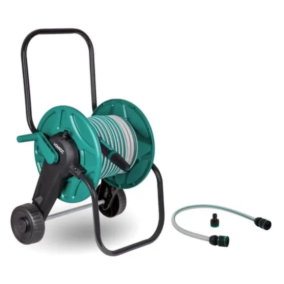 - Slangvagn med 20 meter trädgårdsslang: Trädgårdsslangen är smidig att dra ut och on tack vare veven på sidan av slangvagnen. Den är även lätt att lyfta och bära tack vare sin kompakta design och bärhandtag.