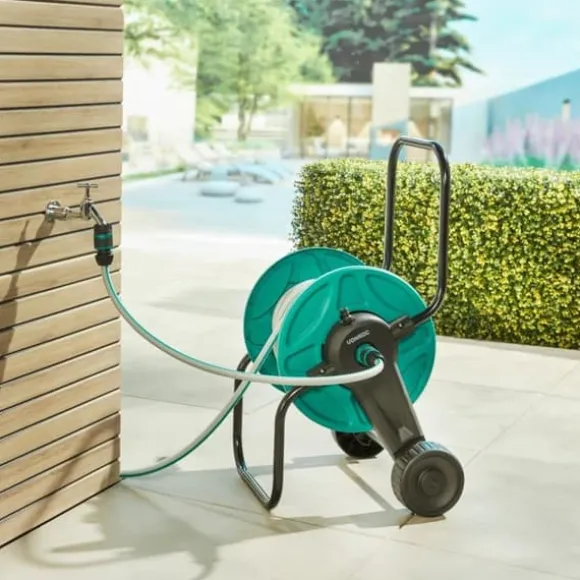 Ta med dig slangvagnen vart du än ska, den kompakta designen och handtaget gör den lätt och smidig att bära. Klar med ditt arbete? Rulla enkelt in din vattenslang men veven på sidan av slangvagnen. När du ska förvara din slangvagn, så sätter du enkelt fast slangen med hjälp av spännet på vagnen.