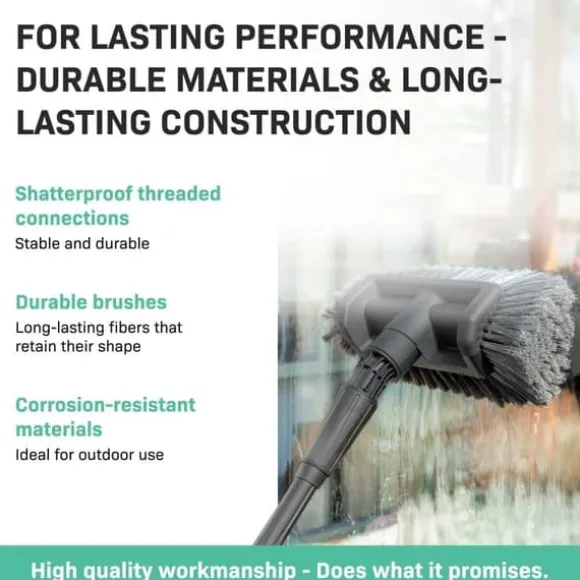 Denna utdragbara tvättborste levereras komplett och redo att användas direkt. Med den mångsidigt användbara borsten kan du t.ex. rengöra fasadbrädor, sluttande tak, väggar och solpaneler. Borsten är också perfekt för rengöring av (stora) fordon. Borstens fibrer är tillräckligt mjuka för att inte skada någon yta men tillräckligt starka för att effektivt avlägsna smuts. Borsten behåller sin form och är väl skyddad mot missfärgning.