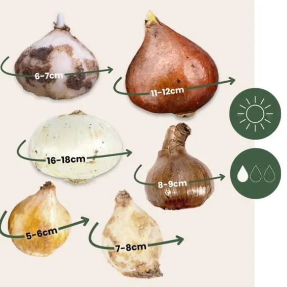 Detta paket innehåller en blandning av blomlökar med olika omkrets vid leverans.