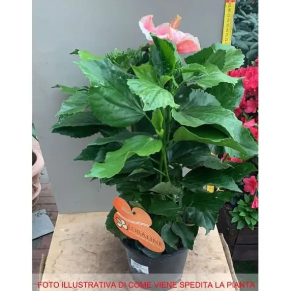 Ibisplantan är det mest uppenbara uttrycket för hur generös naturen är. Dess blommor är rena explosioner av färg. Det handlar om en städsegrön buske, som är 1 m hög och bred, med medelhög tillväxt. Den har flaskgrön blad och mycket stora blommor, vilket garanterar en blomstring från maj till oktober. Den ska placeras på en ljus plats med halvskugga och få regelbunden vattning. Såld i kruka med en diameter på cirka 19 cm – höjd cirka 40 cm. Växten är redo att planteras. Observera: växtens höjd kan variera beroende på säsong vid inköp. (Under vintersäsongen saknar växten den luftiga delen) OBS: växtens färg är assorterad, ej valfri, beroende på tillgång hos plantskolan.
