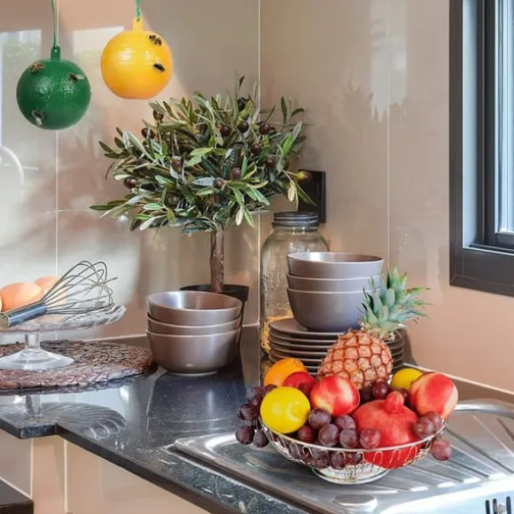 2、 Säker och giftfri: Denna insektsfälla inomhus är gjord av giftfria, luktfria och miljövänliga material. Flugfällan använder matbete och ljusa färger för att enkelt fånga skadedjur. Du kan placera den säkert nära mat eller växter för att hålla dessa otäcka fruktflugor borta från ditt liv. Fruktflugfällor är mest effektiva när de placeras nära vanliga häckningsplatser.