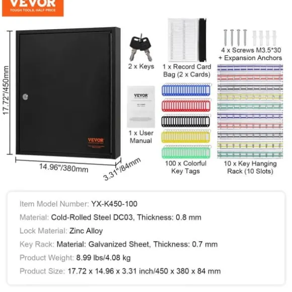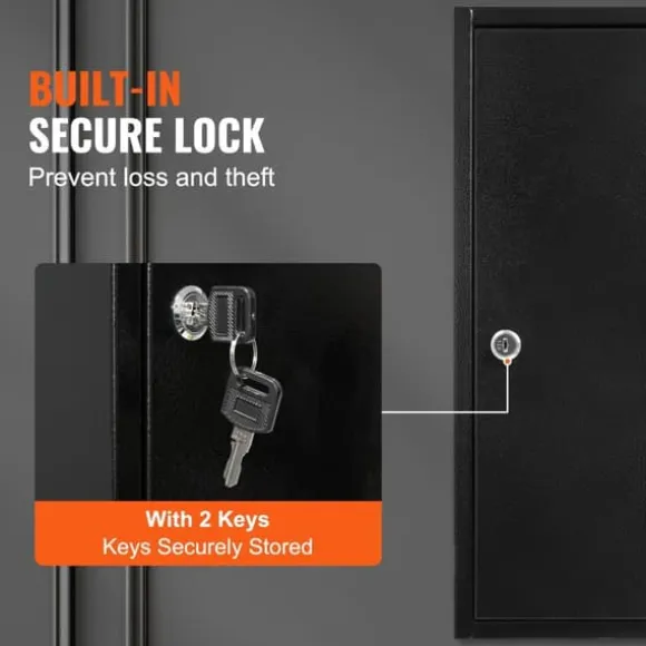 Nyckelskåpet är tillverkat av ett högkvalitativt stålhölje och ett premium säkerhetslås som garanterar säkerheten för dina nycklar. Det levereras med två nycklar, vilket minimerar risken för nyckelförlust.
