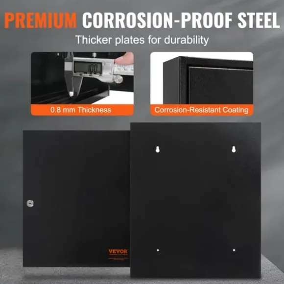 Detta nyckelskåp är gjort av korrosionsbestål, kallvalsad stål och håller i många år utan skador. Med en tjocklek på 0,8 mm motstår det dagliga stötar och påfrestningar vid regelbunden användning och säkerställer en trygg förvaring av dina nycklar.