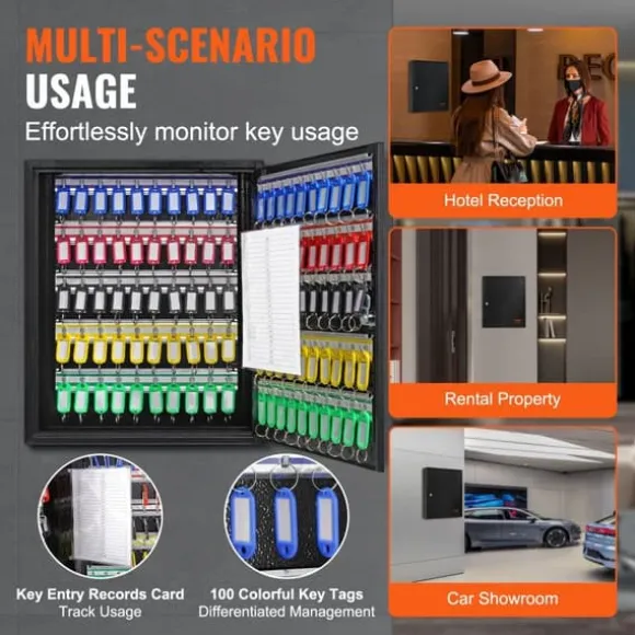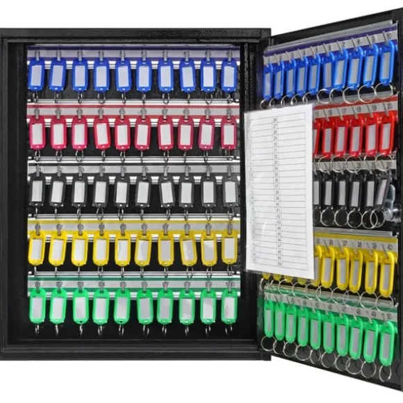 Utrustad med nyckelin- och utgångskort samt 100 färgglada nyckelringar kan du enkelt kategorisera och hantera dina nycklar. Registreringskorten hjälper till att spåra nyckelanvändningen och ger insikt i nyckelaktiviteterna.