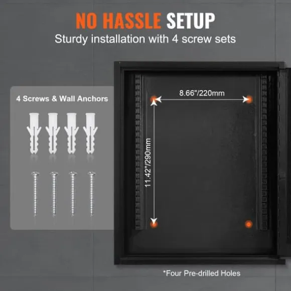 I paketet ingår fyra skruvsatser, så att nyckelskåpet kan monteras säkert och platsbesparande på väggen.