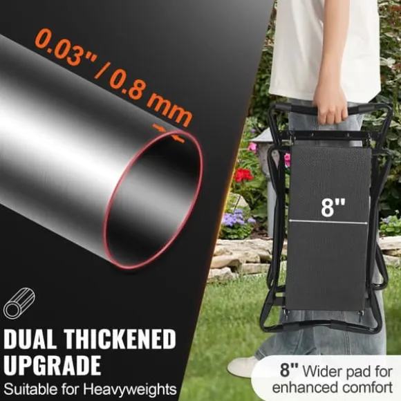 -Vår trädgårdspall och knästol har en viktkapacitet på upp till 300 pund och är konstruerade av höghållfast kolstål, vilket säkerställer orubblig stabilitet och hållbarhet. Den böjs eller deformeras inte lätt, vilket minskar risken för halka och ger dig sinnesfrid.