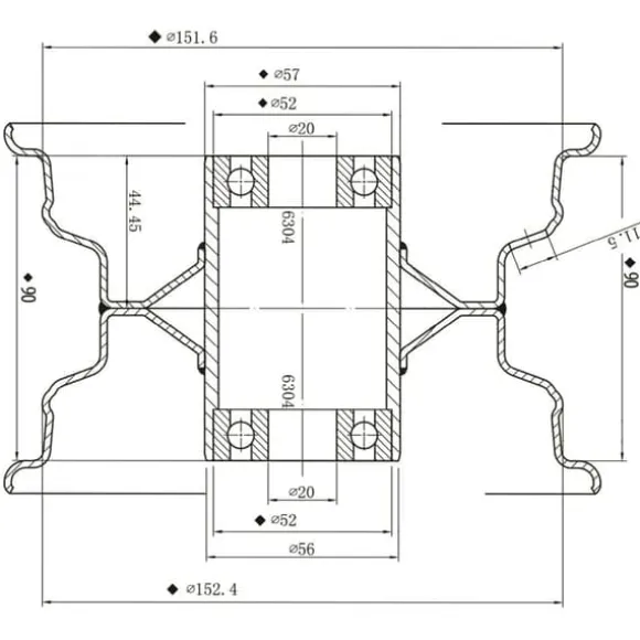Gräsdäck monterade på kraftiga stålfälgar med kullager.
