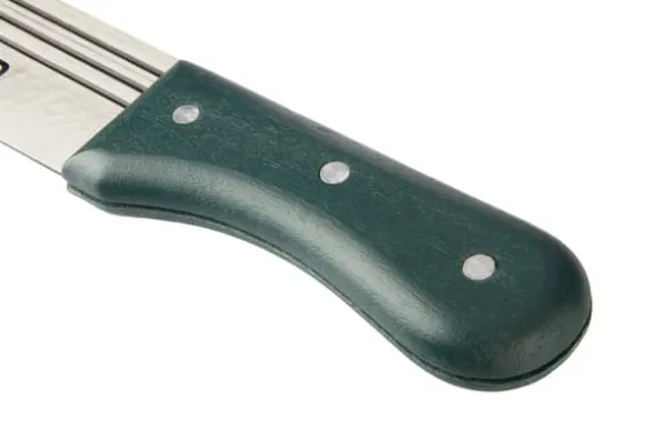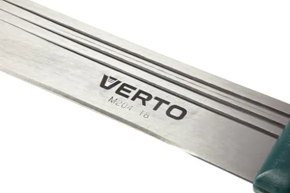 VERTO trädgårdsmachete (ref.nr. 15G191) är 455 mm lång. Mycket användbar för trädgårdsarbete. Bladet är tillverkat av härdat stål. Den speciella bladformen gör arbetet enklare. Handtaget är tillverkat av starkt trä, fäst med nitar. Trähandtaget ligger bekvämt i handen. Varumärket VERTO är designat för trädgårdsarbete.
