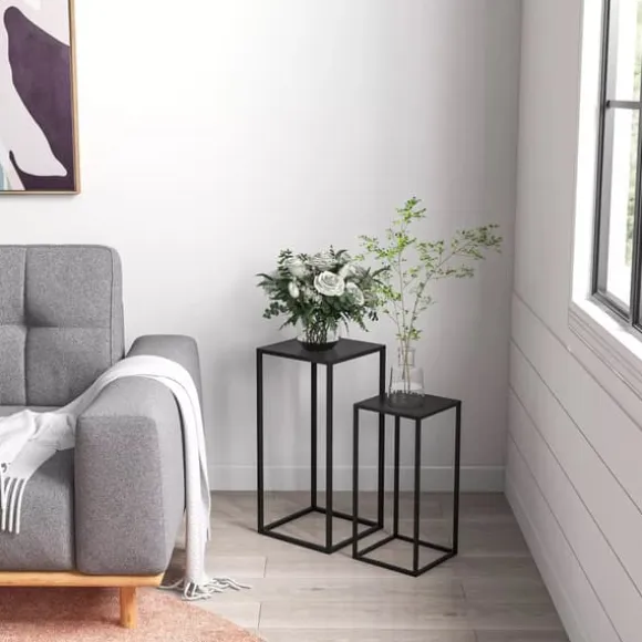 Upptäck vårt 2-pack blomsterställ i industriell stil – det perfekta komplementet till din samling av krukväxter. Den robusta konstruktionen i svart stål ger varje rum en touch av elegans. Med två nivåer i olika höjder möjliggör dessa växtställ en visuellt tilltalande arrangemang av dina växter. Perfekt för ett stilfullt hem!