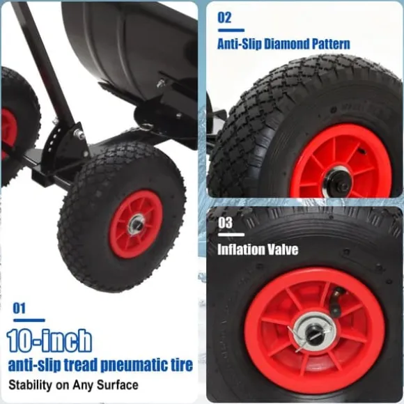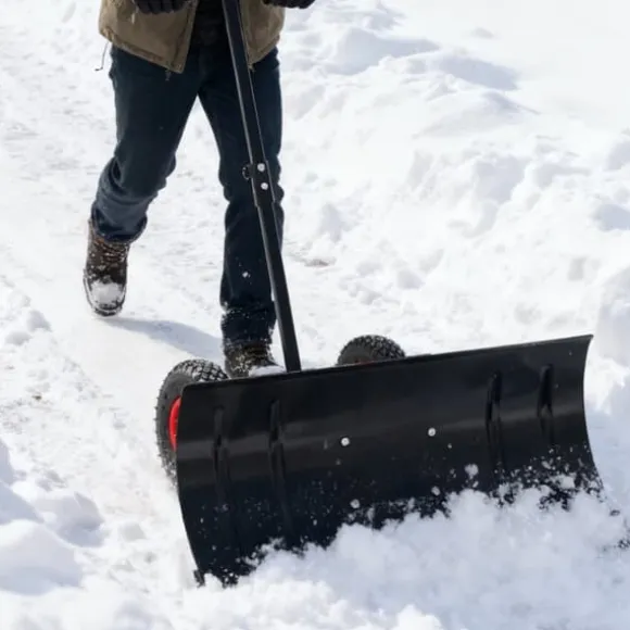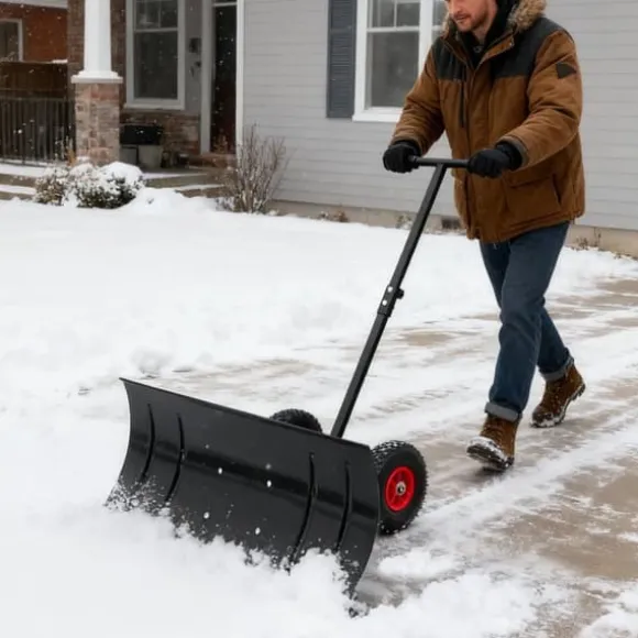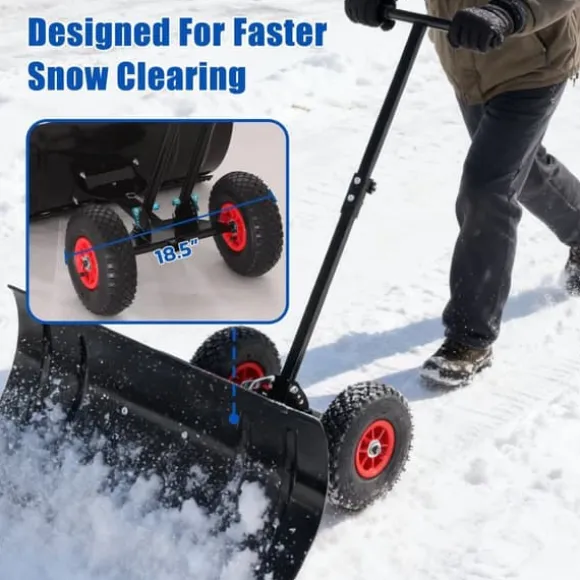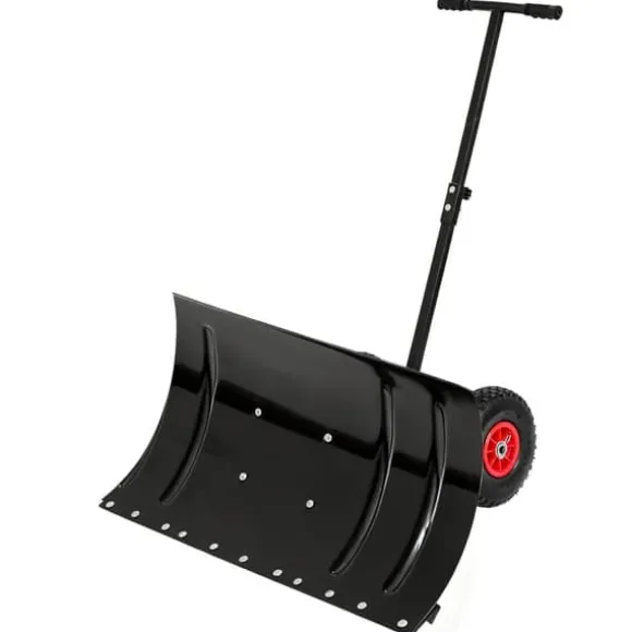 Denna 30″ breda metall snöskyffel med hjul och justerbart handtag är det perfekta verktyget för att enkelt och effektivt rensa uppfarter, gångvägar och trottoarer från snö. Den ergonomiska designen, de robusta materialen och de smarta funktionerna gör snöröjningen mycket enklare och bekvämare, även vid tuffa vinterförhållanden.