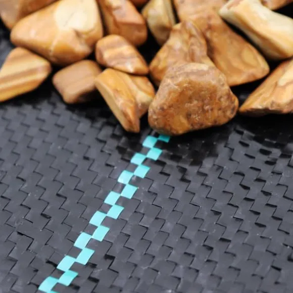 Markeringsremsorna på ogräsbekämpningsmembranet möjliggör exakt och snygg placering av de enskilda plantorna.