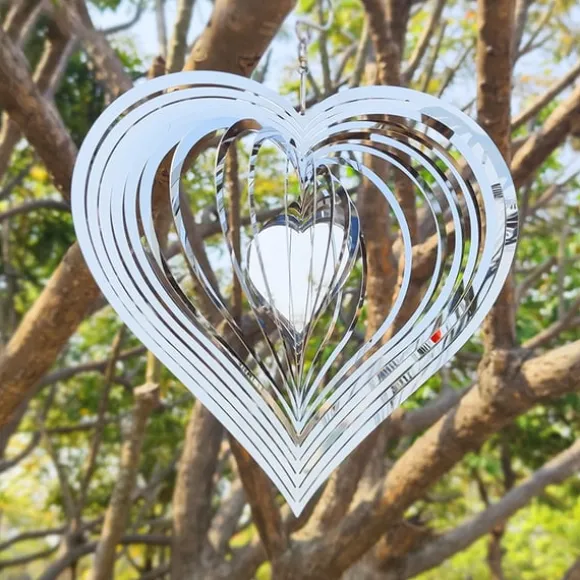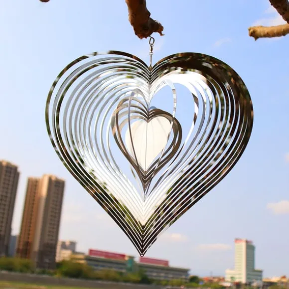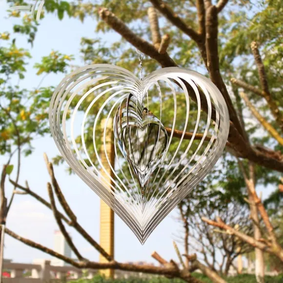 Lugnande kinetisk konst: Njut av den rogivande effekten av kinetisk konst med detta fascinerande vindspel. Den mjuka rotationen hos den hjärtformade prydnaden skapar en harmonisk och avslappnande visuell upplevelse.