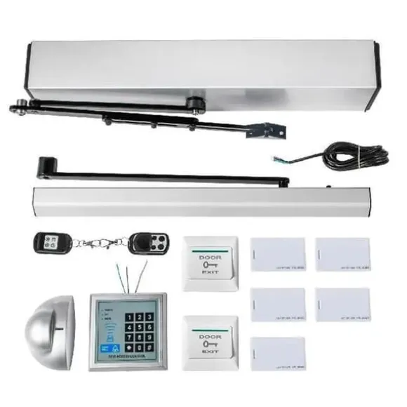 Denna funktionshindrade dörröppnare är designad för att skydda din dörr från skador. Den är tillverkad av aluminiumlegering och rostfritt stål, vilket är rostbeständigt, slitstarkt och stensäkert. Mikrodatorns styrenhet kan styra dörröppningsriktningen. Det kompletta setet innehåller en sensor, två fjärrkontroller, två tryckknappar etc. Det är en måste-ha fjärröppnare för funktionshindrade för din dörr.