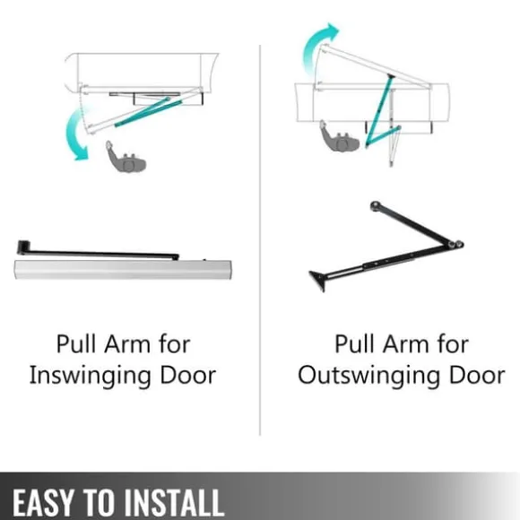 -Lätt att montera: Den automatiska svängdörrsöppnaren är enkel att installera och har bra säkerhet. Detaljerade instruktioner medföljer produkten. Du kan också välja höger arm efter dina olika behov, som till exempel dragöppningsarm eller skjutöppningsarm. Dörrbreddsområde: Max. 120 cm/47,2 tum; minst 66 cm/26 tum.