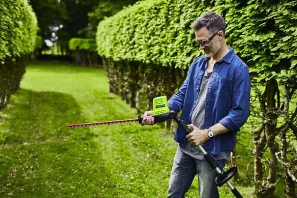 En häck är vanligtvis en linjär form av planering av plantering av träd eller buskar, som planteras på kort avstånd från varandra för att oftast få en inte hög, kompakt vägg av grönska. En häck kan fungera som en unik avgränsning, framhäva vissa delar av trädgården, betona trafikleder, markera tomtgränser, betona gräsytor eller isolera mot buller, vind och föroreningar. Häcksaxar är utformade för att uppnå dessa syften. Detta är utan tvekan det bästa alternativet till bensindrivna häcksaxar tack vare sin moderna borstlösa motor från DigiPro-serien. Utan kolborstar är den borstlösa motorn upp till 10 gånger mer tillförlitlig än en konventionell motor. Enheten ger den nödvändiga kraften och en klipphastighet på 3 000 snitt per minut! Den består av två armar med en total längd på 2 m. Detta, i kombination med den 51 cm långa bladlängden, gör arbetet enklare, roligare och snabbare. Lätt och bekväm att använda vid både vertikal och horisontell klippning med det 180° roterande bakre handtaget.