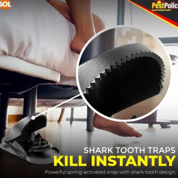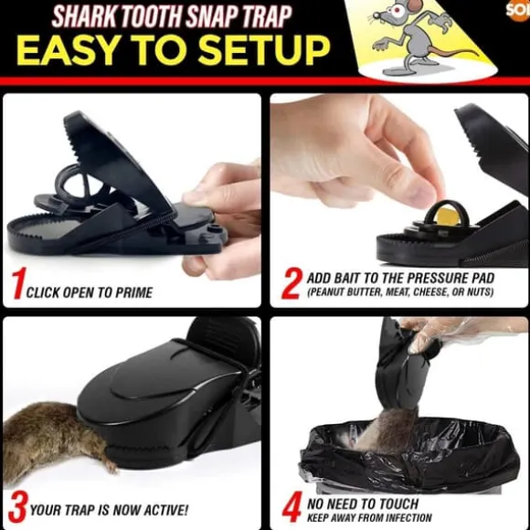 Shark Tooth Snap Traps – Our mouse traps for indoors and outdoors are designed to kill instantly. Simply place some bait on the pressure activated pad and our mouse traps that kill instantly will do the rest. Quick & effective mousetraps.