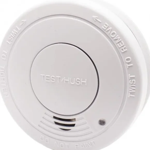 Installera den optiska brandvarnaren i taket för att den snabbt ska reagera på rök från en glödbrand. Undvik närheten av störande elektriska apparater som dimbara lampor och ventilationsspjäll (rekommenderat avstånd ca 0,5 m). Testa brandvarnaren regelbundet genom att trycka på testknappen en gång i månaden tills du hör larmet.