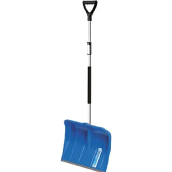 Alpe 50 teleskopskyffel är ett effektivt verktyg med en lätt, modern design och en aluminiumbeslag. Snöskyffelns tekniska egenskaper förbättras avsevärt av dess ergonomiska aluminiumdesign. Skyffelhöjden kan justeras från 122 cm till 160 cm.