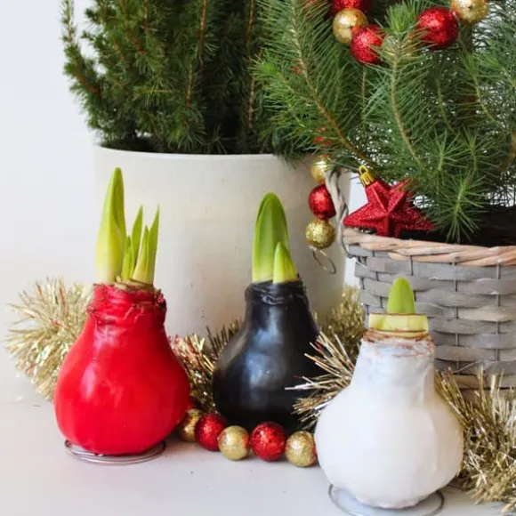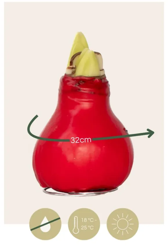 Amaryllislampan är täckt av vax och behöver därför inte vatten. Placera glödlampan på en varm ljus plats i huset men undvik direkt solljus. Vänd lökarna regelbundet för att förhindra att blomman växer snett.
