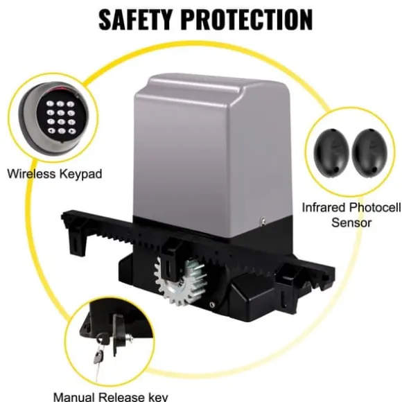 Vår kedjedrivna portöppnare är kompatibel med alla typer av skjutportar och uppfyller enkelt kraven för privata hem, affärsområden, skolor, hotell, gårdar, rancher och mer. Den skyddar din egendom mot inkräktare.