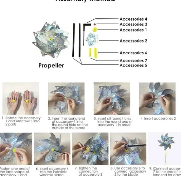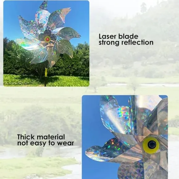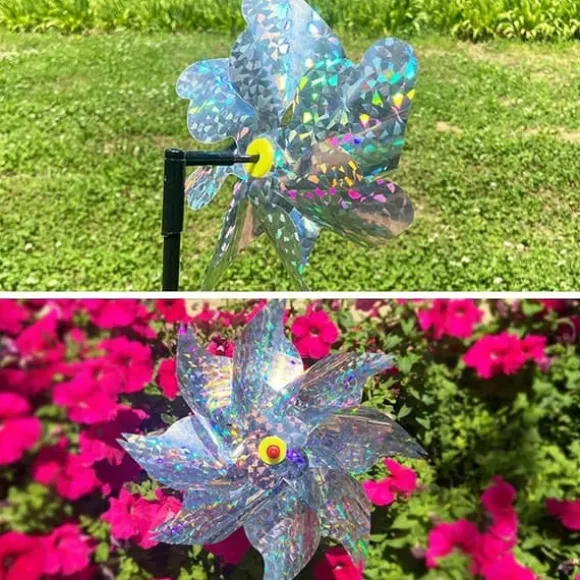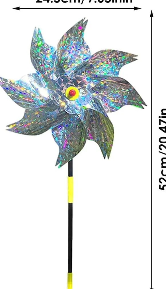 Reflective Bird Repellent Pinwheel är en miljövänlig lösning för att hålla fåglar borta från dina trädgårdar, fönster, fruktträdgårdar, lador, grödor, båtar och bilar. Med hjälp av vindrörelser och ljusreflektion avskräcker detta vindhjul effektivt fåglar