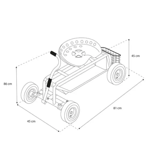 Till skillnad från många andra trädgårdsstolar är AG22 lätt att flytta runt tack vare sitt handtag och den roterande axeln framtill. Med sina gummidäck kan du hantera vilken terräng som helst med lätthet.