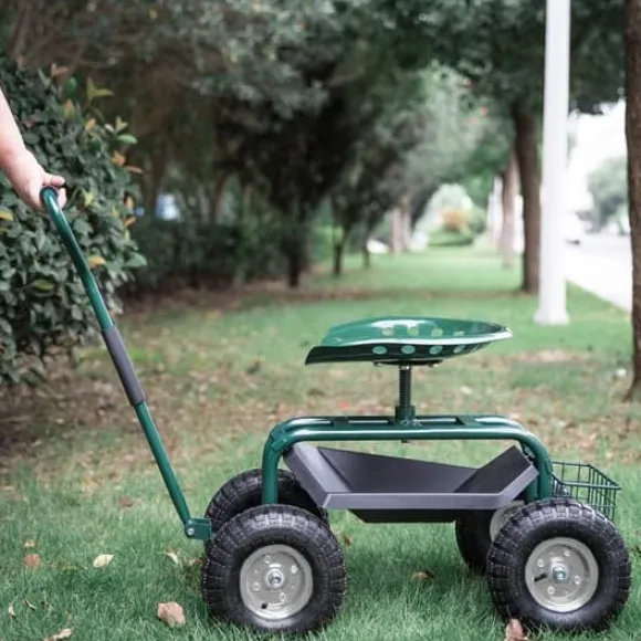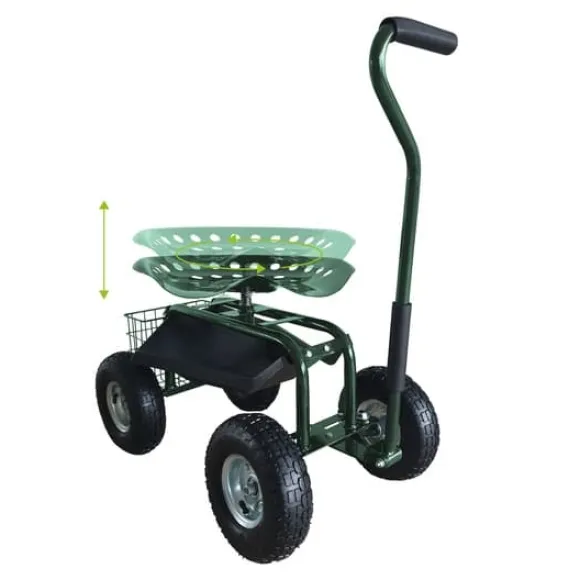 Med AG22 mobila trädgårdssits i grönt från AXI blir trädgårdsarbete en barnlek! Med denna trädgårdsstol med hjul kan du arbeta i trädgården från sittande ställning. Tack vare den praktiska 360 graders roterande och höjdjusterbara sitsen behöver du inte längre böja dig för att sköta dina växter eller städa upp din trädgård. Så du behöver inte längre anstränga ryggen!