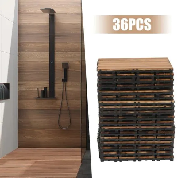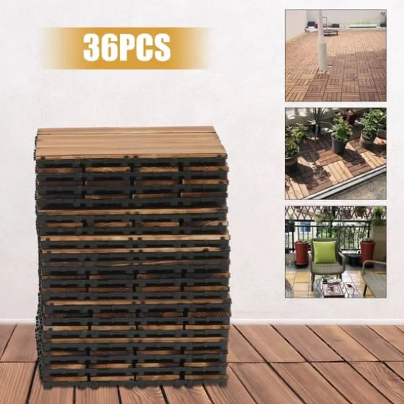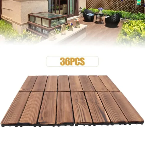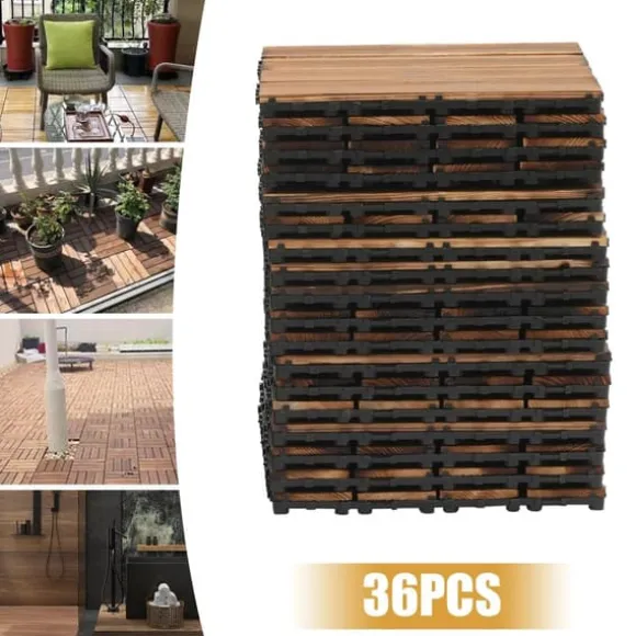 36-pack bruna trätrallplattor – klicksystem för balkong & uteplatsLyft din inom- och utomhusmiljö med robusta trätrallplattor i kamfer‑tall, karboniserade för extra motståndskraft. Den vattenresistenta, halksäkra ytan och den förstärkta PE-basen ger hållbarhet, stabilitet och enkel montering på balkonger, uteplatser, gångar och våtutrymmen.