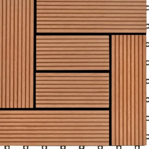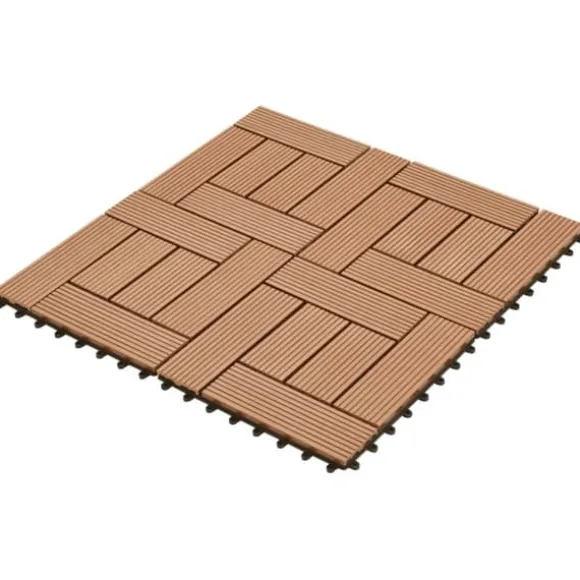 Detta set med balkongplattor har en individuell storlek på 30 x 30 cm, och kommer med 11 delar, allt som allt täcker de en area på 1 kvadratmeter. De är perfekta för balkonger, uteplatser, altaner eller badrum.