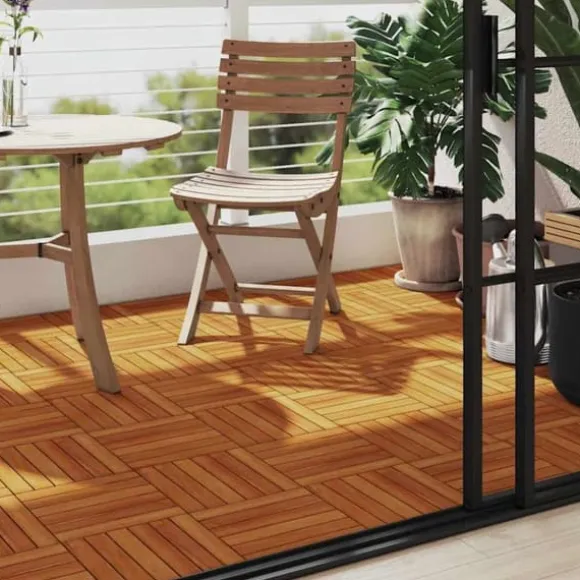 Balkongplattorna är skapade av akaciaträ, vilket är ett tropiskt träslag. Plattorna är väderbeständiga och extremt tåliga.// Tack vare dess passform i varandra kommer de att låsas samman och bilda en stabil gångyta.