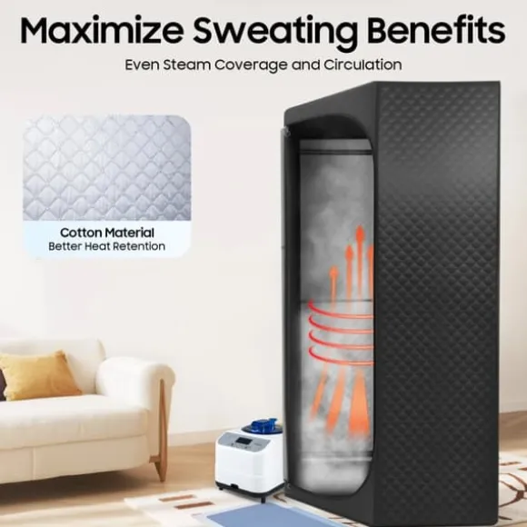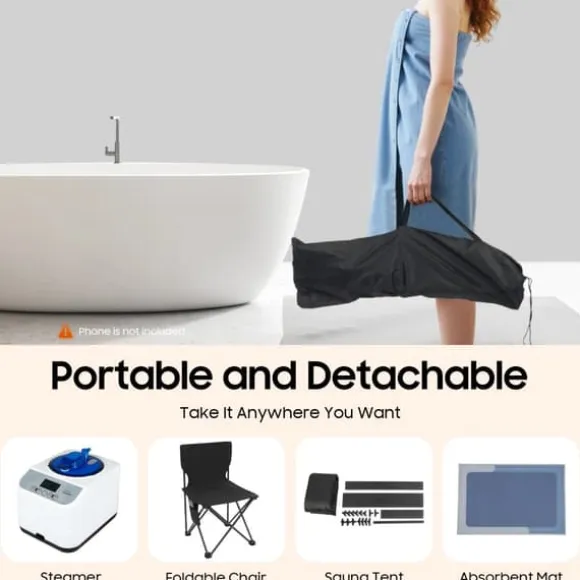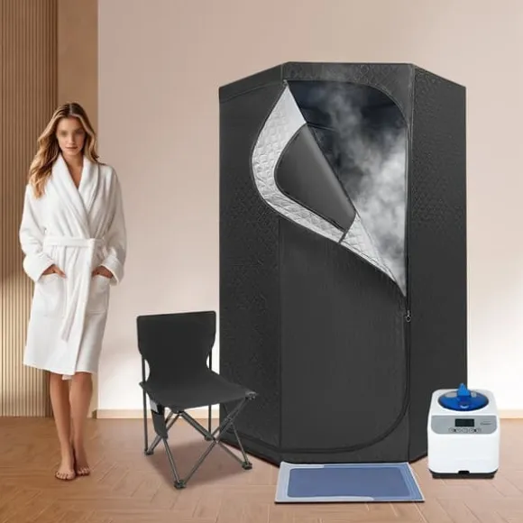 Privat ång‑spa för hemmetSkapa din egen avslappningshörna hemma: setet inkluderar ett rymligt femkantigt ångtält, en bekväm hopfällbar stol och en kraftfull 1350 W ånggenerator med 3 L vattentank. Perfekt för återhämtning, värme och välmående – när du vill.