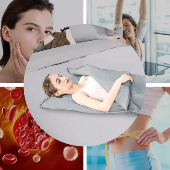 Infraröd bastofilt med EU‑kontakt 220V – kraftfull, bekväm och enkel att använda Njut av avkopplande värme hemma: Justerbar temperatur 35–80°C, timer 15–60 minuter och 650W effekt. Oxfordtyg med självhäftande fiberlager ger jämn värmespridning och lätt skötsel.