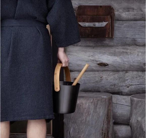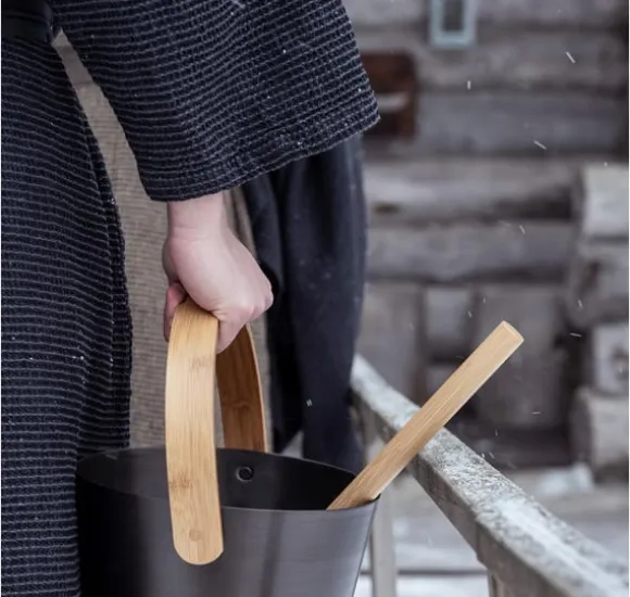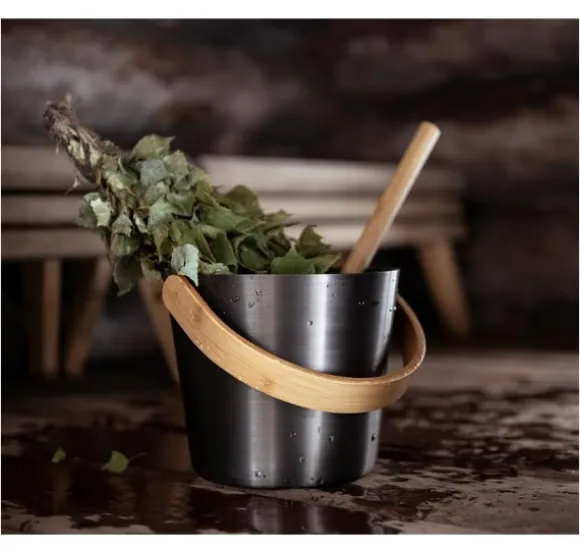 Rento Bastuhink aluminiumbrun, bambuhandtag. Höjd 35 cm, diameter 23 cm, 5L.