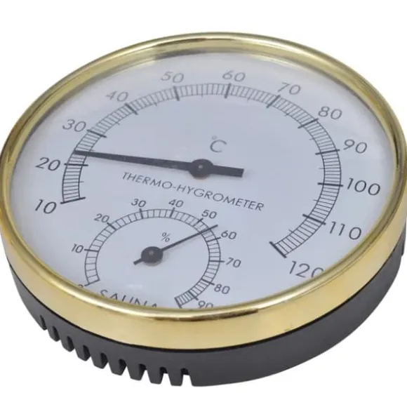 Hinken är vattentät med sitt kompatibla inlägg. Timglaset ser till att du inte stannar för länge i bastun, medan termo-/hygrometern gör att du kan ställa in det mest behagliga bastuklimatet genom att mäta temperaturen och luftfuktigheten.