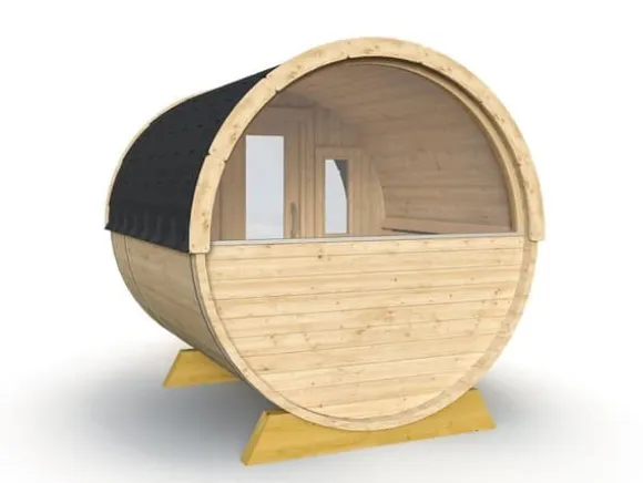 Bastu tunnan Halvmåne kommer som våra andra modeller som vi erbjuder i webshopen i ett kompakt platt paket, som innehåller alla nödvändiga delar, såsom tak, fönster, dörr och det krävs inte någon speciell lyftanordningar. Eftersom att våra bastur är byggda på ett unikt sätt kan du använda andra lämpliga kaminer från andra producenter om du så önskar. Den enda viktiga faktorn som du alltid bör tänka på när du letar efter kamin är rätt värmare för ditt basturums volym.