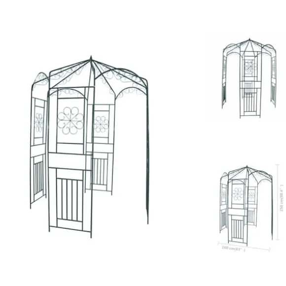 Denna vackra trädgårdsbåge är gjord av väderbeständigt smidesjärn och är en stabil bas för rosor och andra klätterväxter. De vackra ornamenten ger bågen en romantisk känsla och eftersom rosenbågen har en paviljongdesign är den perfekt för att kasta skugga på sommaren.