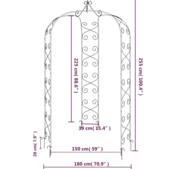 - Robust ram: Trädgårdsbågens robusta pulverlackerade stålkonstruktion är tillräckligt stark för att stötta upp många klättringsväxter.