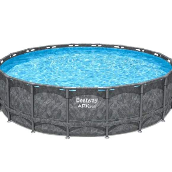 Förvandla din trädgård till en oas med det innovativa Bestway APX 365 Poolsetet – året runt-användning!Bestway APX 365 pool är designad av branschveteraner som har kombinerat hållbara material med avancerad väderskyddsteknik. Poolen är skapad för att stå emot tidens tand och ge din familj många år av minnesvärda stunder i trädgården.Året runt-användning:Som den första poolen i sitt slag är APX 365 utrustad med Polar-Shield väderskyddsteknik, vilket gör att poolen kan stå kvar utomhus året runt. Inga lågsäsongsförvaringar behövs – den är redo för sommarskoj och står pall även under vinterns kyla. Polar-Shield skyddar poolduken från väderpåverkan, även i låga temperaturer.Hållbar konstruktion:Poolens ram är tillverkad av korrosionsbeständigt, galvaniserat stål, belagd med ett lager zink för att motverka rost och slitage från väder och vind. Tack vare ClickConnect-anslutningar är installationen enkel och kräver inga verktyg. Dessa anslutningar förhindrar metall-mot-metall-kontakt för ökad hållbarhet och rostskydd.Poolduken är tillverkad av Tritech, ett 3-lagersmaterial som är förstärkt för maximal styrka och punkteringsbeständighet.Tritech erbjuder:• 15 % högre rivtålighet• 33 % bättre töjbarhet• 83 % högre punkteringstålighet jämfört med standard PVCKomplett poolkit med smarta funktioner:Bestway APX 365 levereras som ett fullständigt paket som inkluderar:• Sandfilterpump (kapacitet: 6,056 L/t) – för ren och klar vattenkvalitet• Polysphere filterbollar – ett lätt, tvättbart och återvinningsbart alternativ till traditionell filtersand• Galvaniserad stålstege – för säker och enkel in- och utstigning• Poolskydd – skyddar poolen från smuts och skräpDe bomullsliknande Polysphere filterbollarna är tillverkade av återvinningsbart och giftfritt material och kan hålla i upp till 6 månader med rätt underhåll.Specifikation:• Dimensioner: 5,49 m x 1,32 m• Vattenkapacitet (90 %): 26,000 liter• Material: Tritech-förstärkt duk för hållbarhet och punkteringsbeständighet• Design: Mörkt marmortryck på utsidan och blått marmortryck på insidan• Installation: Enkel att sätta upp och ta ner utan behov av verktygSetet innehåller:1 pool, 1 sandfilterpump, 250 g Polysphere filterbollar, 1 galvaniserad stålstege, 1 poolskydd och 1 reparationslapp.