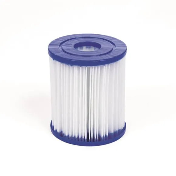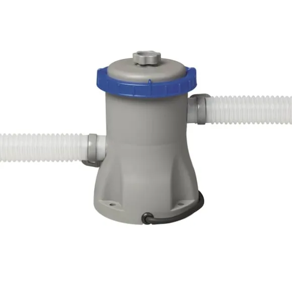 Den runda poolen är tillverkad i Tritech-material som är UV- och klorbeständigt. Den har en vattenkapacitet på 5377 L. Uppsättningen består av en pool, en filterpump med patron och en reparationslapp.