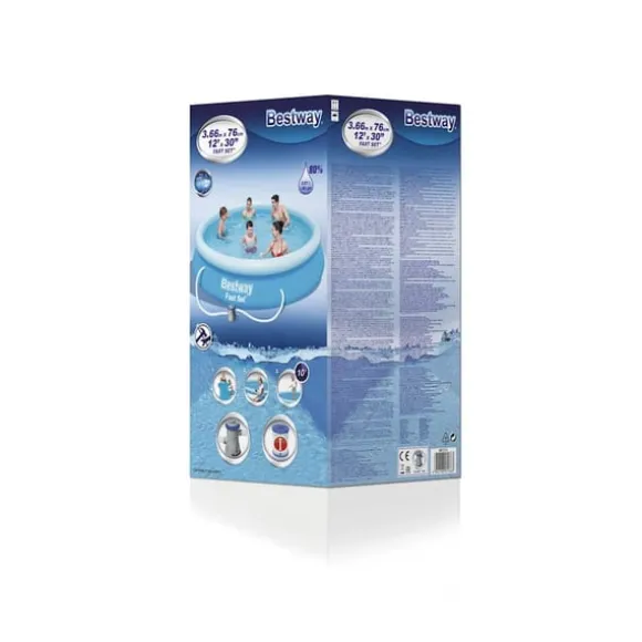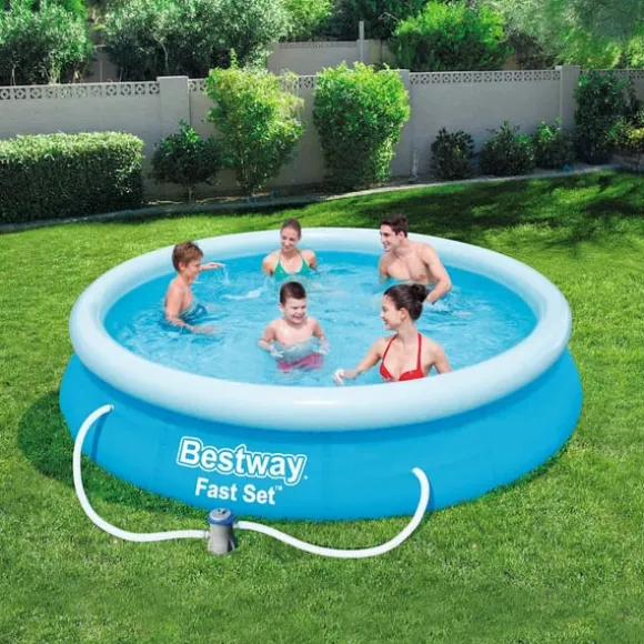 Poolen 57274 Fast Set från Bestway med uppblåsbar kant blir en praktisk badlösning i sommar.