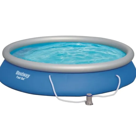 Poolen 57313 Fast Set från Bestway med uppblåsbar kant blir en praktisk badlösning i sommar.