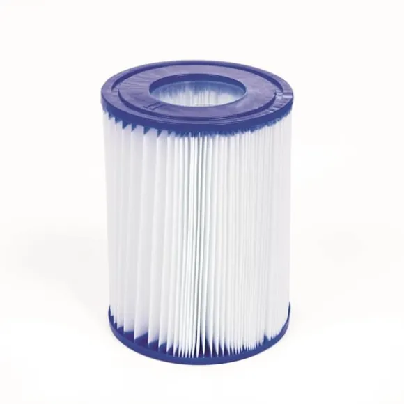 Den runda poolen är tillverkad i Tritech-material som är UV- och klorbeständigt. Den har en vattenkapacitet på 9677 L. Uppsättningen består av en pool, en filterpump med patron och en reparationslapp.